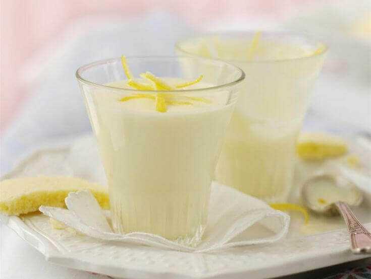 Danach die Sahne steif schlagen und unter den Joghurt heben. Die Mousse in 2 Gläser füllen und 2 Stunden kalt stellen. Mit etwas Zitronenschale servieren.
